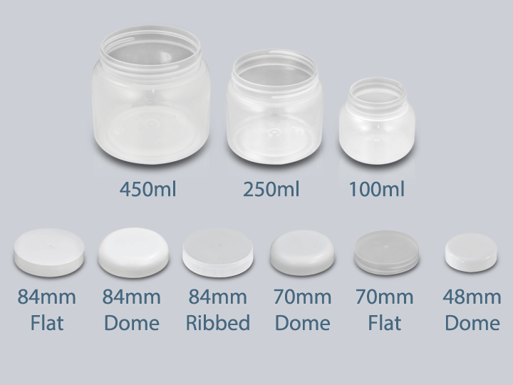 Needing a large face on-shelf, the BULB Jar does a brand justice. Produced from polypropylene using stretch blow moulding, the jars have a high gloss finish and can be produced in either clear or opaque colours, this range is ideal for most applications. Available in 3 sizes, the 250ml and 450ml are compatible with various lid options to further customise the look and feel. The 100ml is only available in 48mm DOME finish.