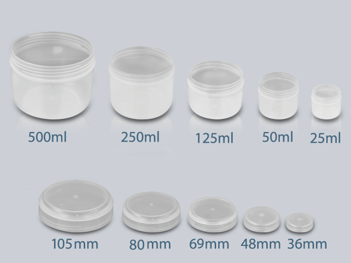 Applications: Container for creams, crystals, powders (Non Talc) hair care