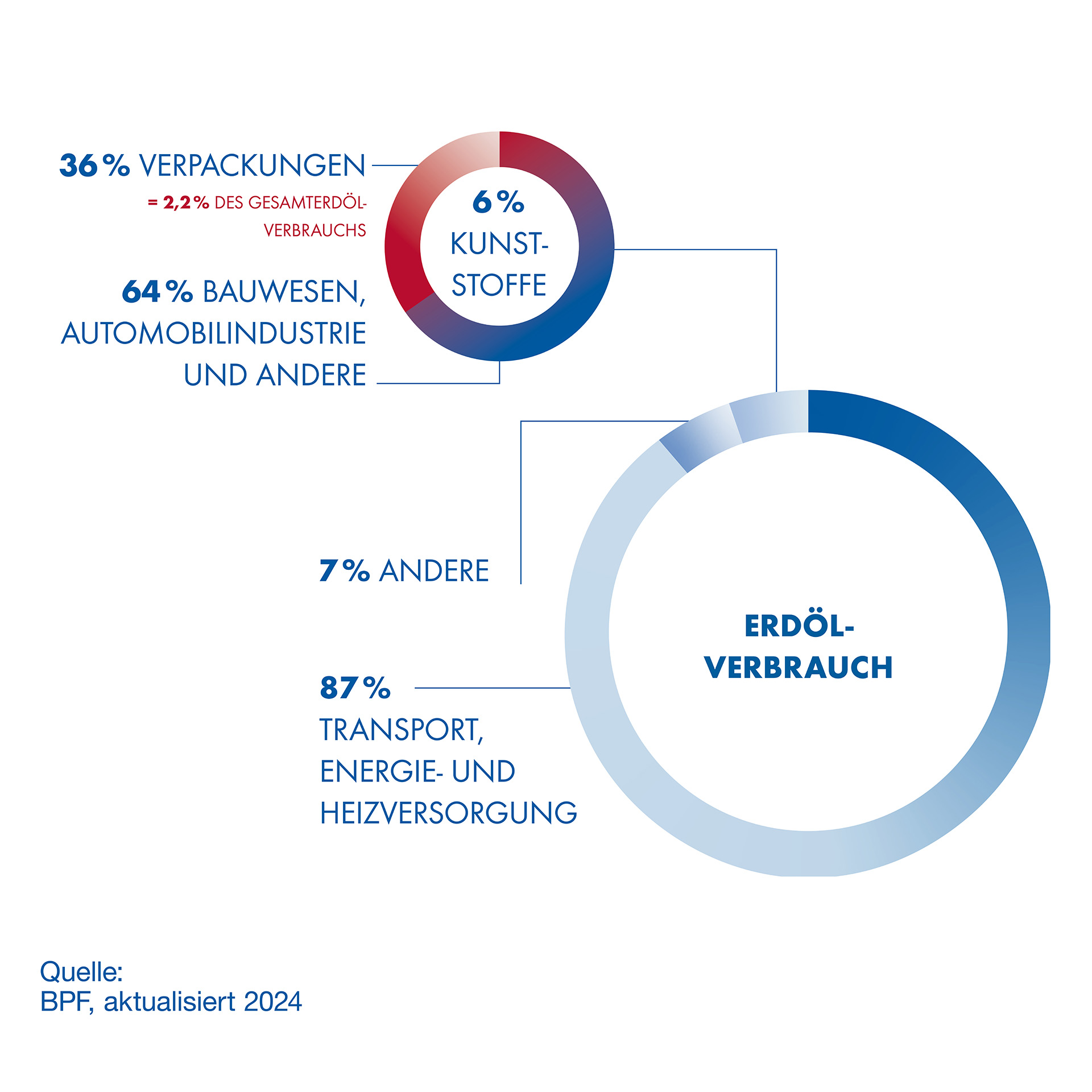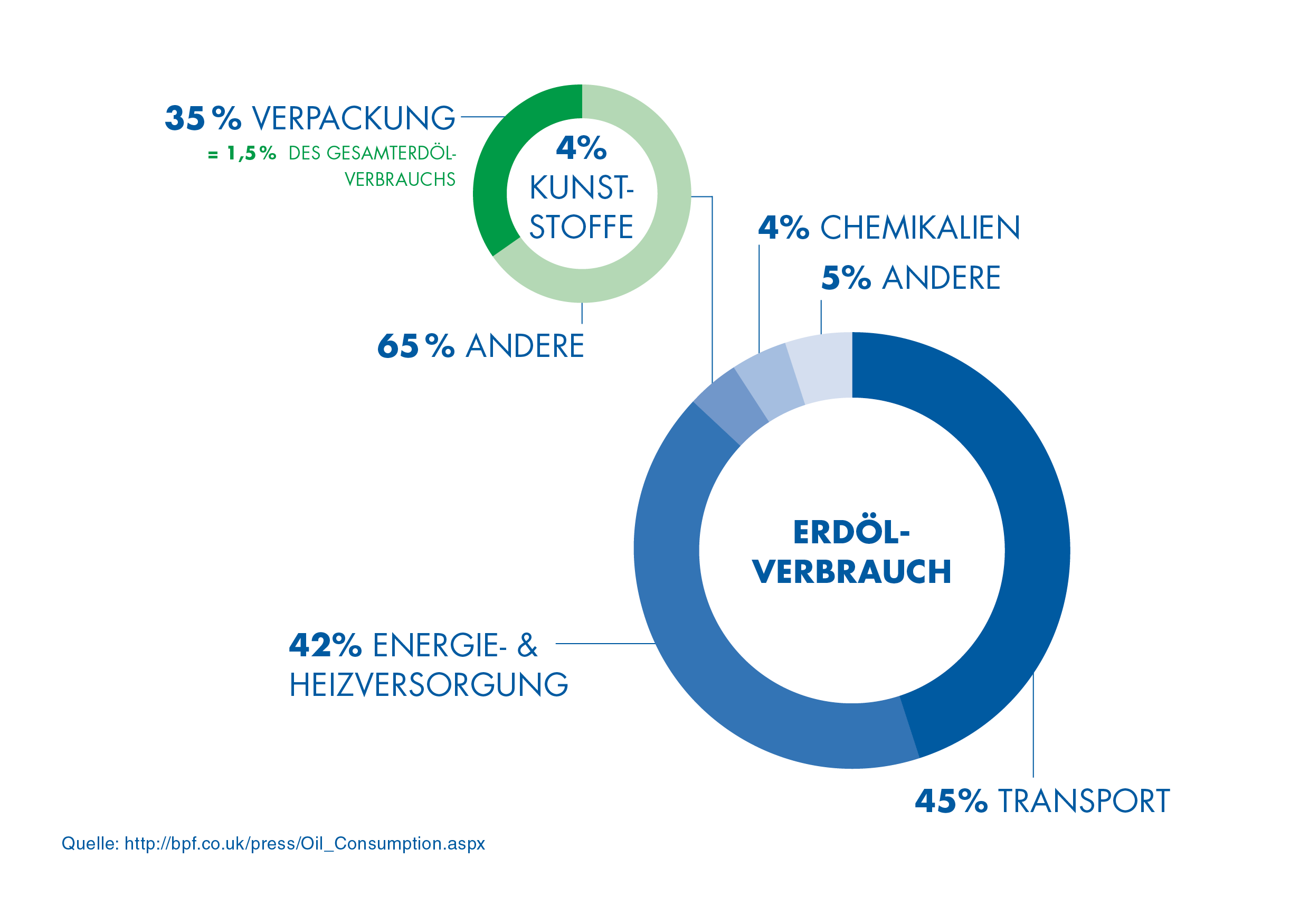Nur 2,2 % des weltweit geförderten Erdöls werden für die Herstellung von Kunststoffverpackungen genutzt.