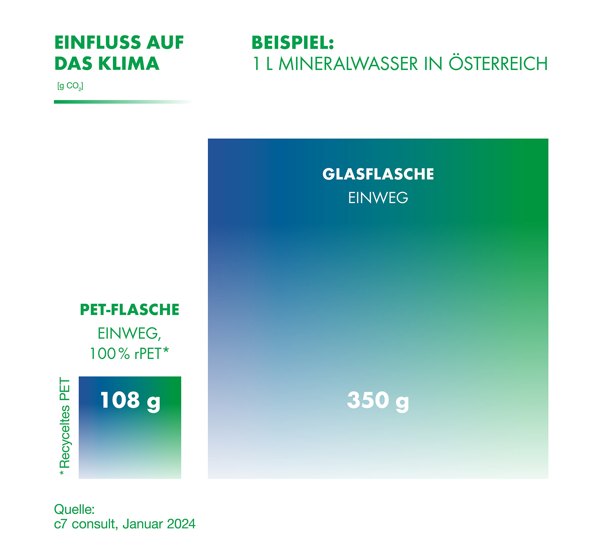 - Ein großer Vorteil von PET ist die ressourcenschonende Recyclingfähigkeit. In der Ökobilanz haben Flaschen mit hohem Rezyklatanteil daher ganz klar die Nase vorn.