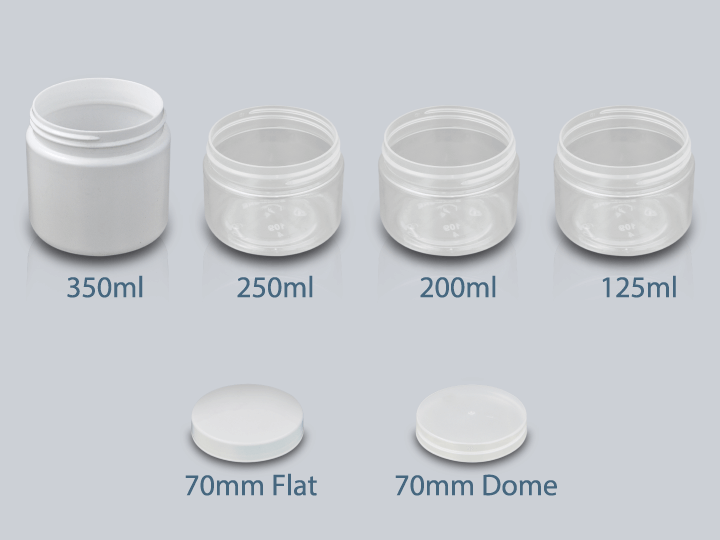 Complementing our STANDARD range is a selection of straight walled polypropylene jars with a narrower 70mm opening. With a high gloss finish, these
