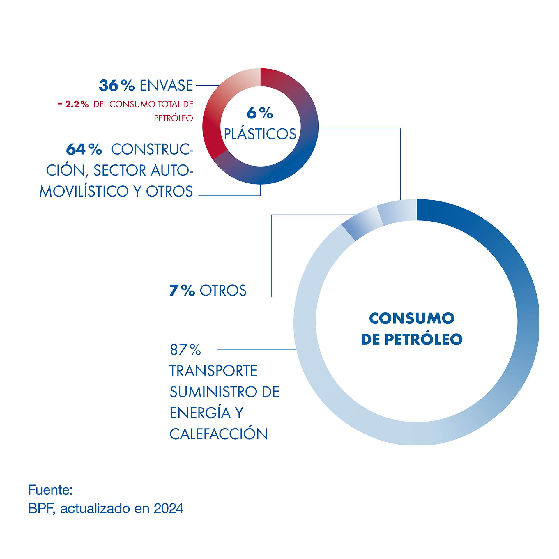 Solo el 2,2 % del petróleo explotado a nivel mundial se utiliza para la fabricación de envases de plástico.