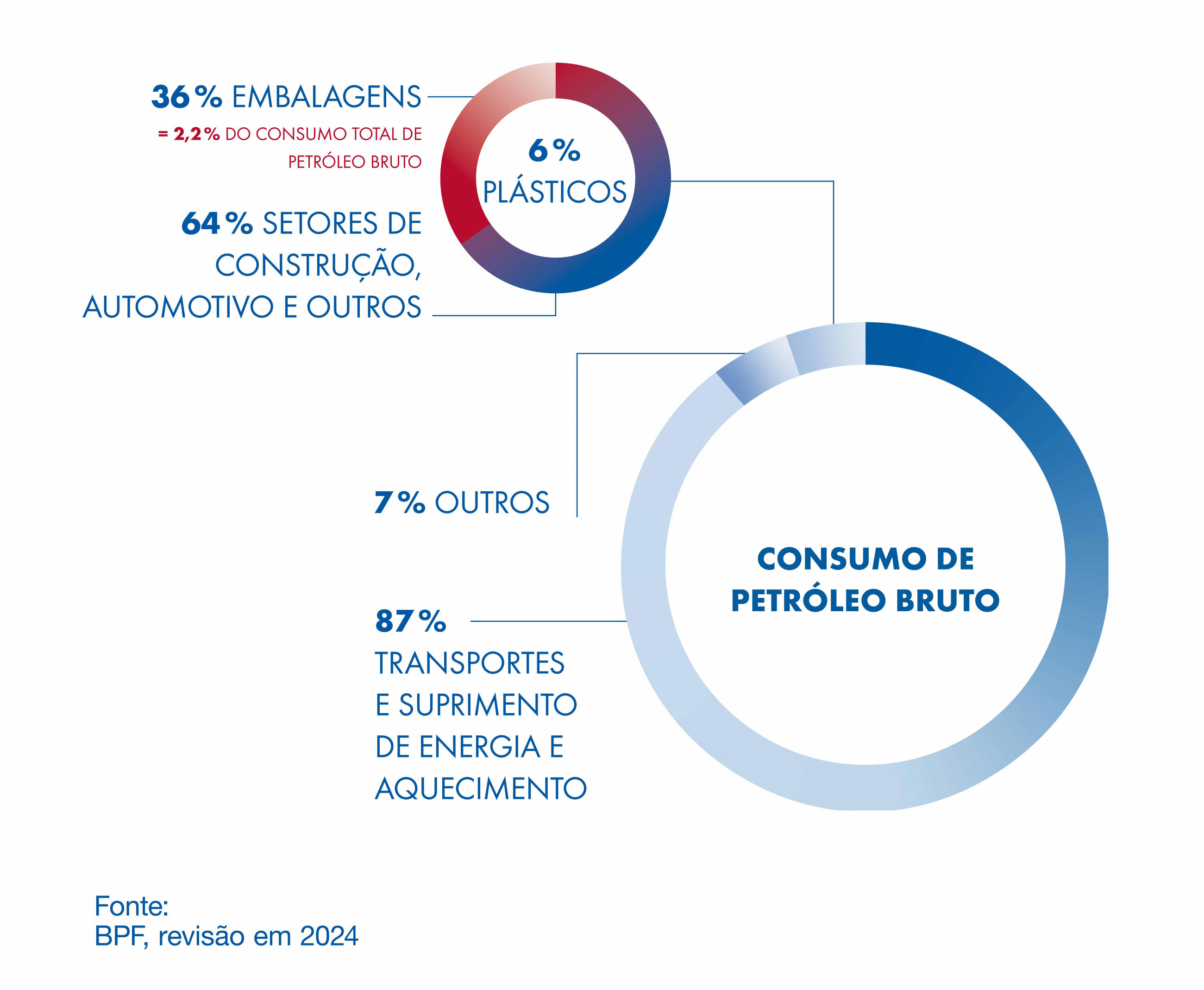 Apenas 2,2% do petróleo bruto produzido globalmente é usado para a produção de embalagens plásticas.