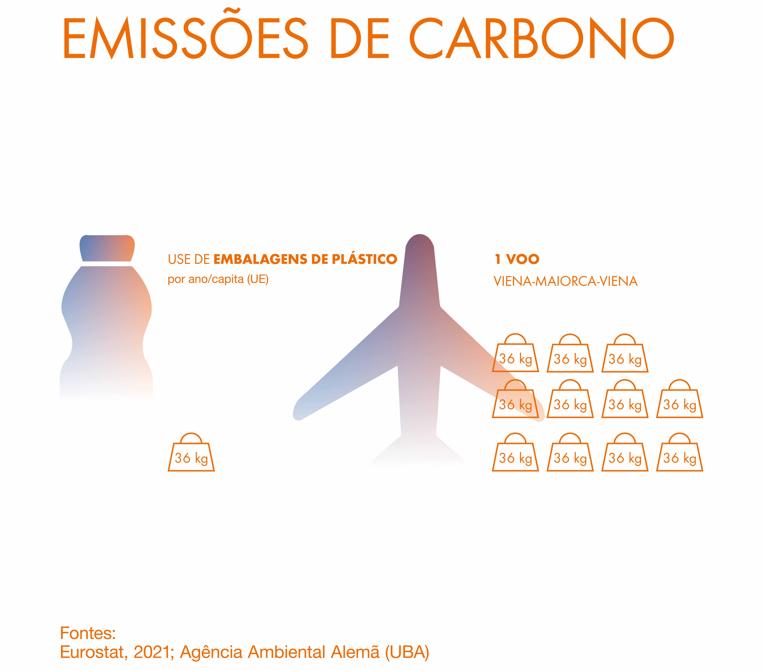 - Só um voo de volta de Viena para Maiorca causa tanta emissão de carbono quanto usar embalagens plásticas por aproximadamente onze anos!