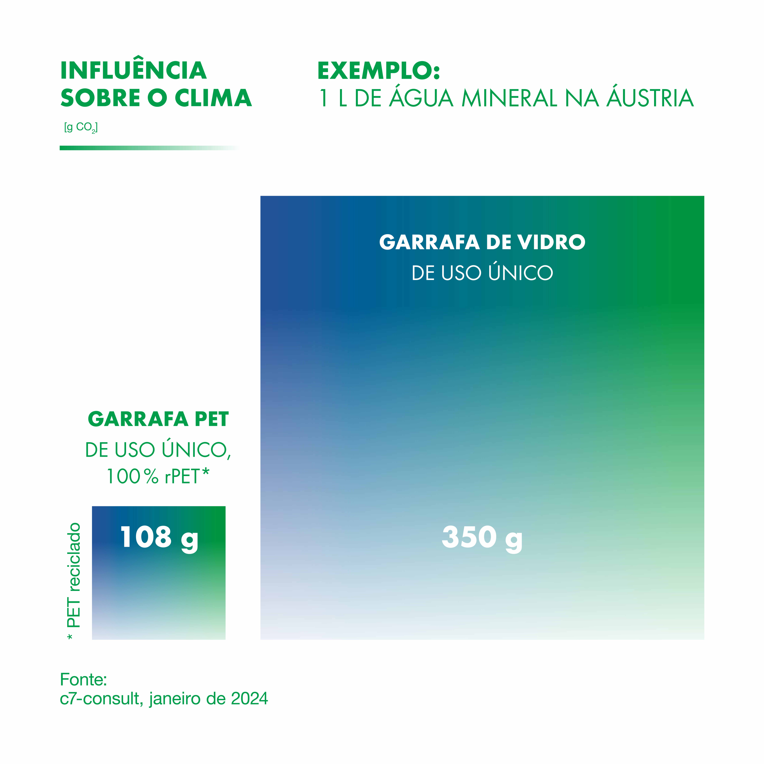 - O vidro tem um ponto de fusão de 1.600 °C, enquanto o do PET é de apenas 260 °C. Sendo assim, menos energia é usada e menos carbono é emitido durante a produção de garrafas de bebidas PET do que quando são produzidas garrafas de vidro.
