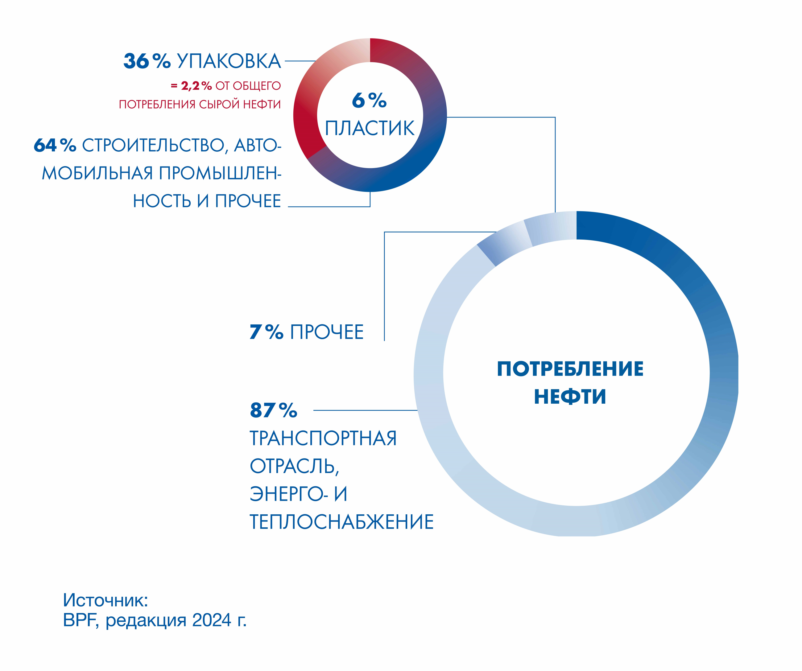 всего 2,2 % добываемой в мире неочищенной нефти используется для производства пластиковой упаковки.