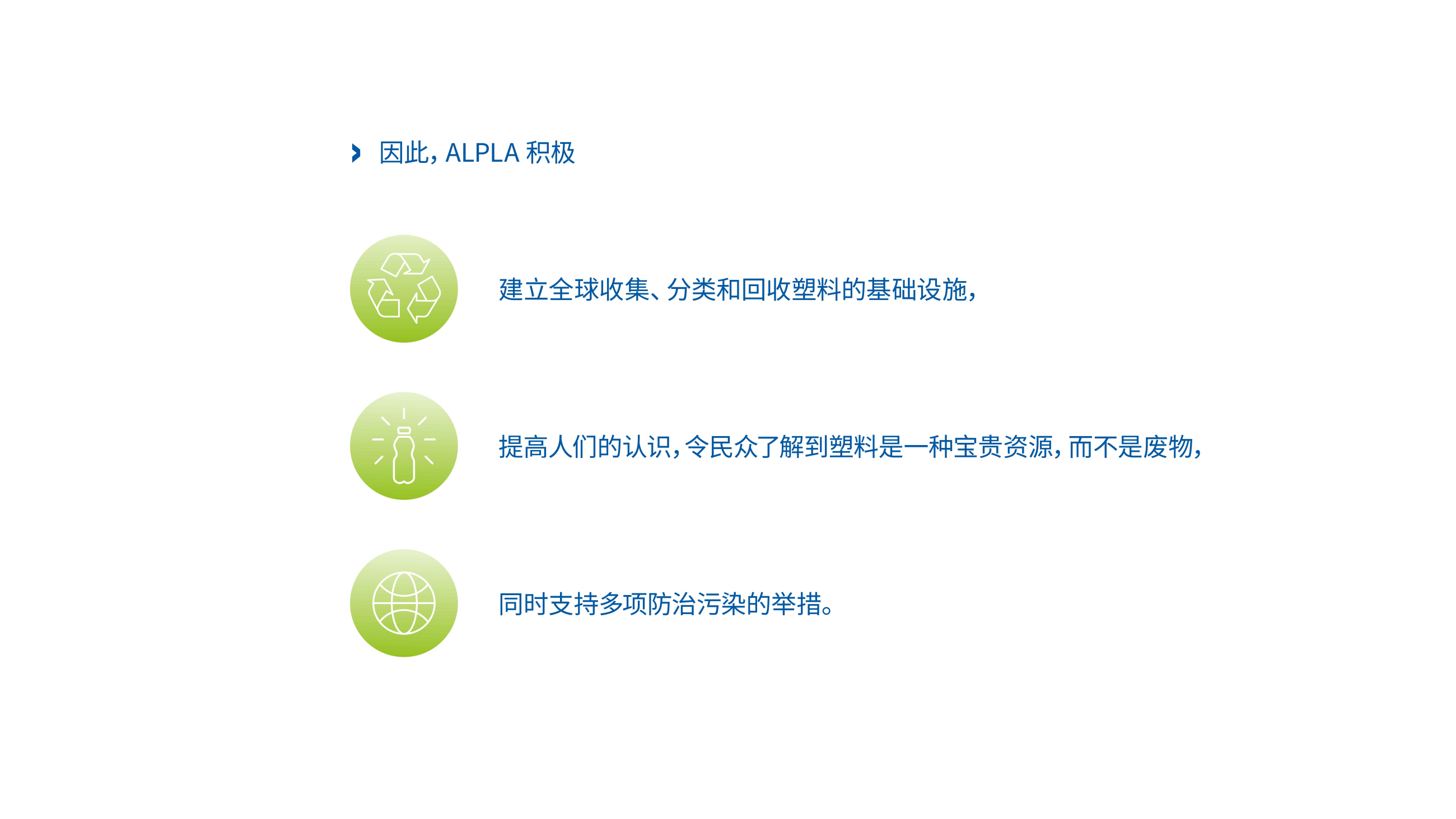 - 塑料是一种宝贵的材料,可确保为全球人口提供安全、负担得起和可持续的供应。关键是要赋予材料以价值,并对其进行回收利用。